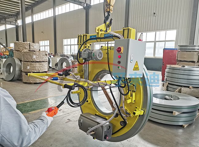 带卷吸吊机适合绝大部分卷材搬运,钢卷,铜卷,铝卷,牛皮纸卷等也同样适用于带卷类。