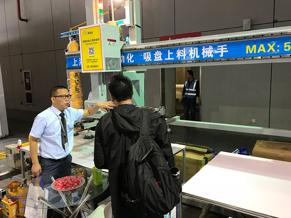 这届工博会共有9大 展。走进展馆,无论是哪个工业门类,无论是单一零部件还是生产线,“创新”已成为工博会最重要的主线。上海孚来迪自动化设备有限公司的真空吸盘设备、吸盘自动上料机械手、分张功能等在展会上非常受关注,国内外客户纷纷到展台了解设备技术性能,孚来迪工程师给予热情 的讲解和指导。