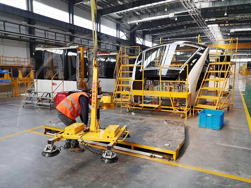 中车浦镇庞巴迪运输系统有限公司成立于2014年,由中车南京浦镇车辆有限公司和庞巴迪运输集团共同出资组建,属于中车南京浦镇车辆有限公司子公司,是国内第一家专门从事单轨和APM胶轮轨道交通车辆及系统设计、生产、集成与销售的**公司,市场范围覆盖除欧洲、美洲外的全球市场。随着公司生产线及技术不断的升级更新,为更好的提升效率,中车浦镇庞巴迪PBTS通过市场考察及全面了解,最终引入了孚来迪公司对的吸盘吊具,主要应用于吸高铁前档玻璃。